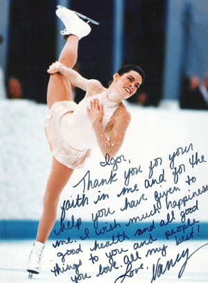 Many people remember the saga of Nancy Kerrigan. Her injury occurred just seven weeks before the 1994 Lillehammer Winter Olympics. Nancy experienced great pain and shock. It presented a serious challenge for her to keep her focus and maintain a positive attitude during her rehabilitation and training. She managed to do all of that. While I was working with her, she was totally committed to the training. The incredible result was an Olympic Silver Medal. In my opinion, her silver medal is edged with gold. Her achievement was remarkable as a human being and as an athlete. |